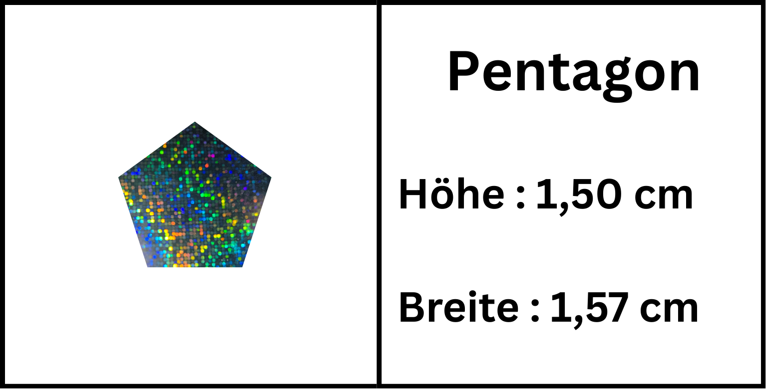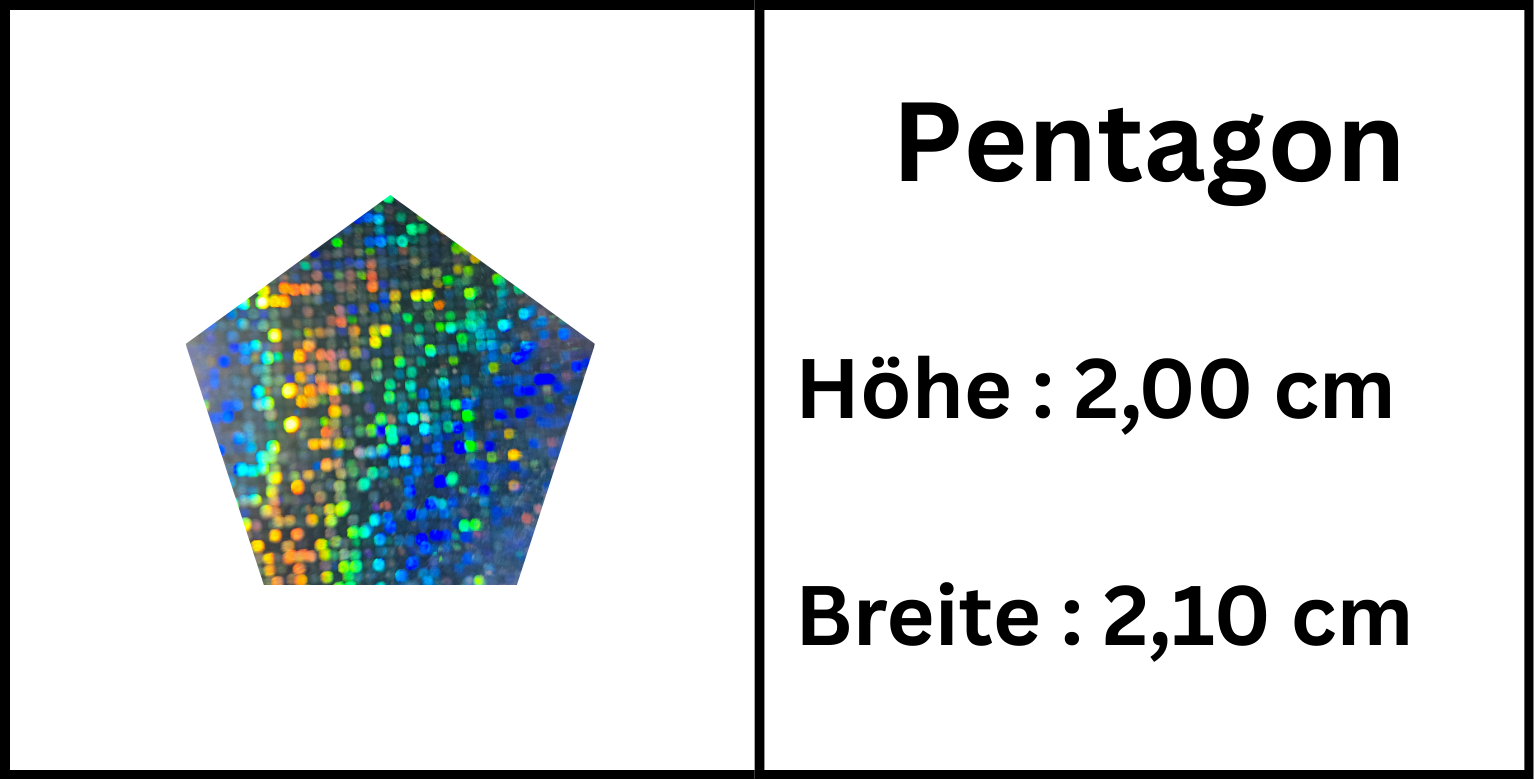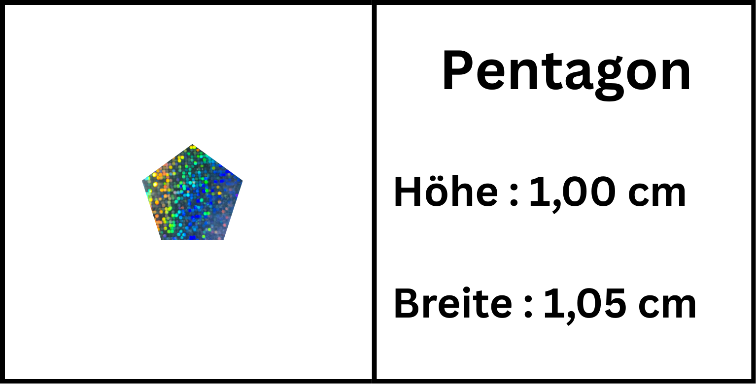 Pentagon mittel (ca. 1,5 × 1,57 cm): ca. 100 Stück pro Blatt