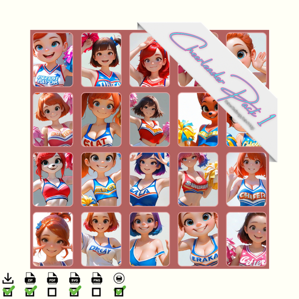 Die Motive zeigen Cheerleader in bunten Outfits, perfekt für kreative und auffällige Designs.