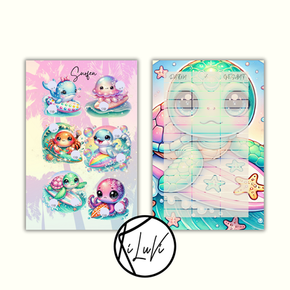 Sechs niedliche Meerestiere warten darauf, mit dir in die Sparwellen zu springen.